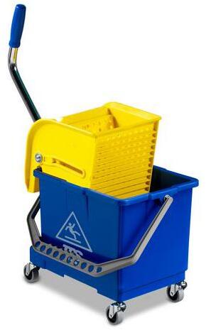 Görgős vödör karos facsaróval. Alkalmas kisebb területek tisztítására. A mozgatásról 50 mm átmérőjű görgők gondoskodnak. Műanyag fogantyúval rendelkezik.