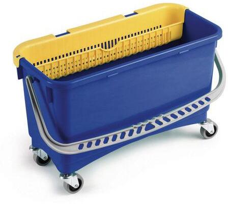 Vödör csavaróval és műanyag fogantyúval. Mozgatható a négy 50 mm átmérőjű görgőnek köszönhetően. színe: kék, sárga csavaró anyaga: polipropilén térfogat: 20 l csomagolás: 1 db a csavaró a csomagolás része